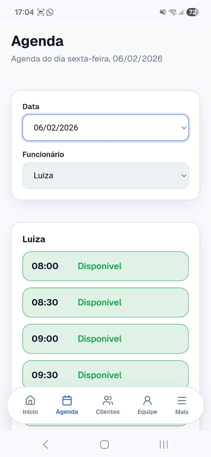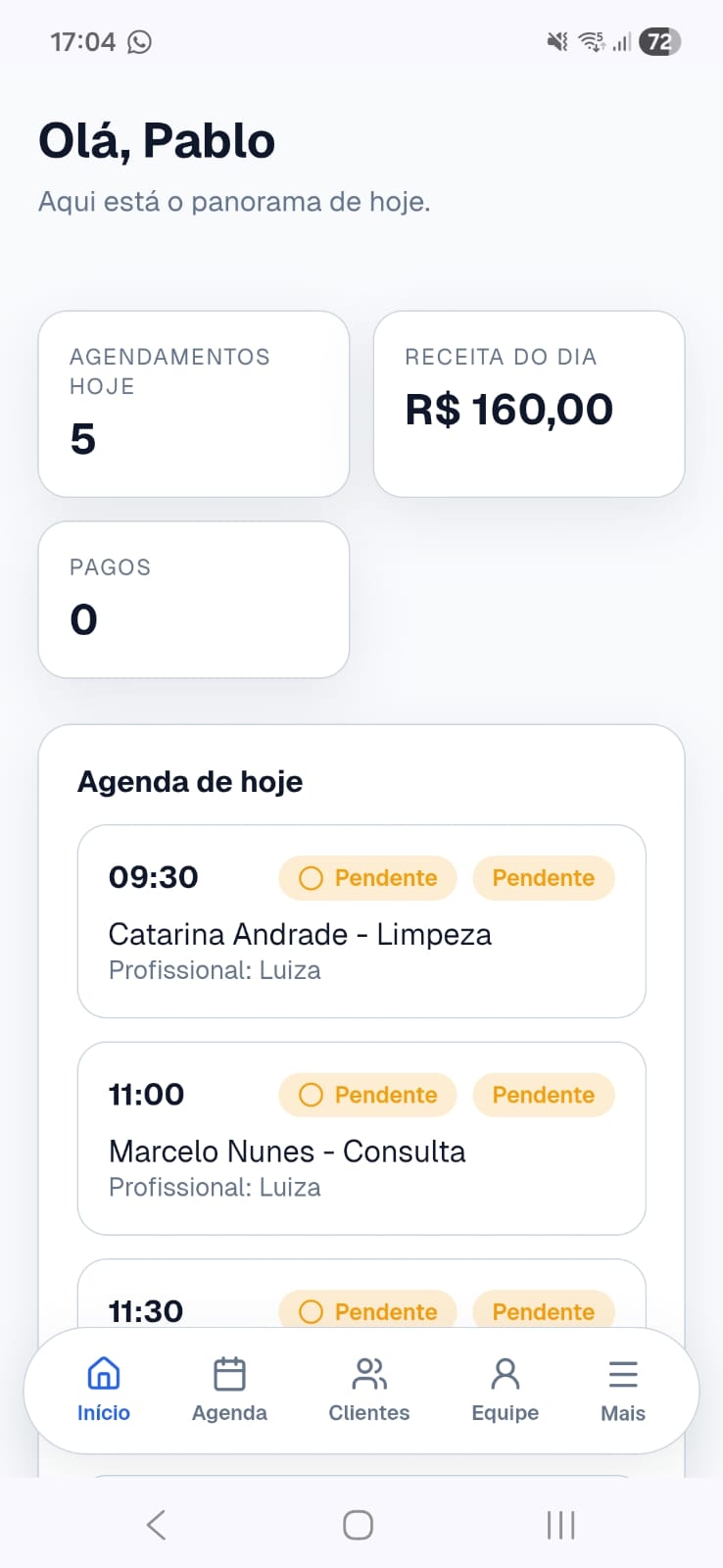 Adicione clientes, serviços e equipe.